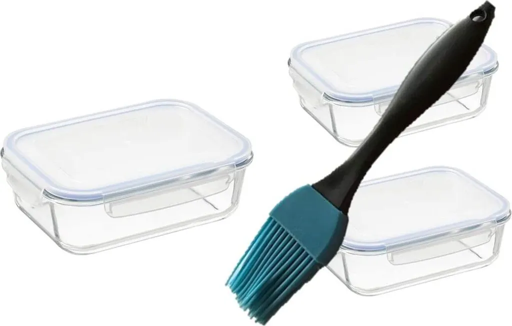 3 Vorratsdosen Set Aus Glas. + Silikon Pinsel Länge 17 Cm Im Set