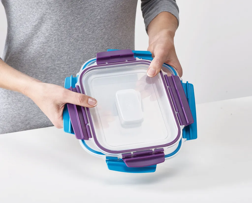 Dosen für die Essensaufbewahrung nehmen häufig viel Platz in den Küchenschränken ein und die Suche nach dem passenden Deckel für die Dose kann schnell zeit- und nervenaufreibend werden. Die Nest Lock Produktlinie von Joseph Joseph hat für dieses Problem die ultimative Lösung gefunden. Aufgrund ihres einzigartigen Designs lassen sich die Dosen mitsamt passenden Deckeln ineinander stapeln, wodurch sie kaum Platz einnehmen. Weiterhin wird durch die Farbcodierungen an Dose und Deckel die Zuuordnung zueinander ein Kinderspiel. Alle Produkte der Nest Lock Linie sind fest verschließbar, luftdicht und auslaufsicher. Spülmaschinen – und Mikrowellengeeignet.