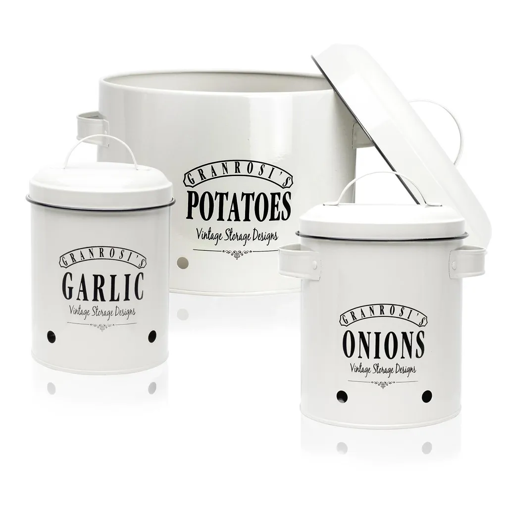 Stilvolle Vorratsbehälter im 3er-Set zur Aufbewahrung von Knoblauch, Zwiebeln und