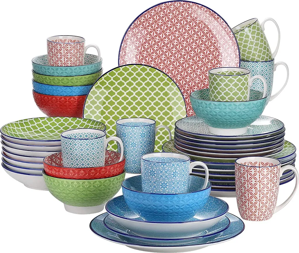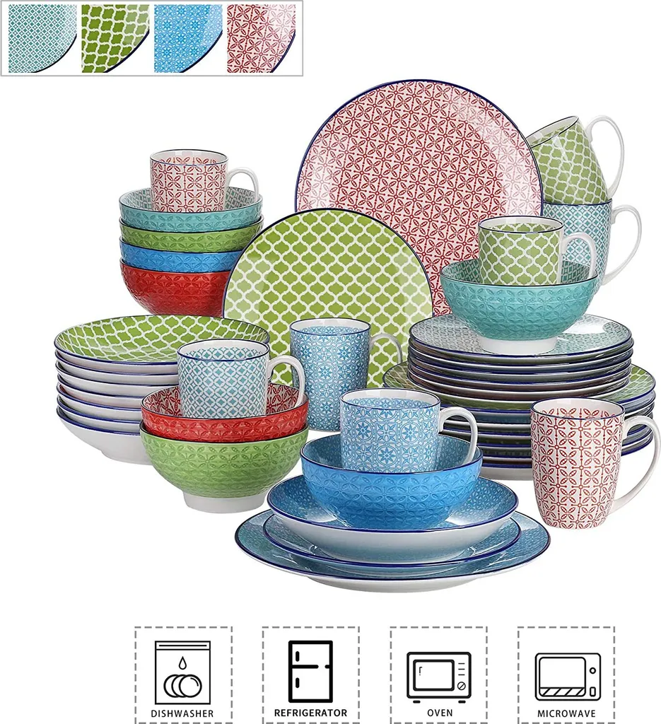 - Aus hochwertigem Porzellan, ist das bunte Geschirrset hitzebeständig, so bei hohen Temperaturen ist es nicht leicht zu brechen. Mikrowellengeeignet, spülmaschinenfest und pflegeleicht;