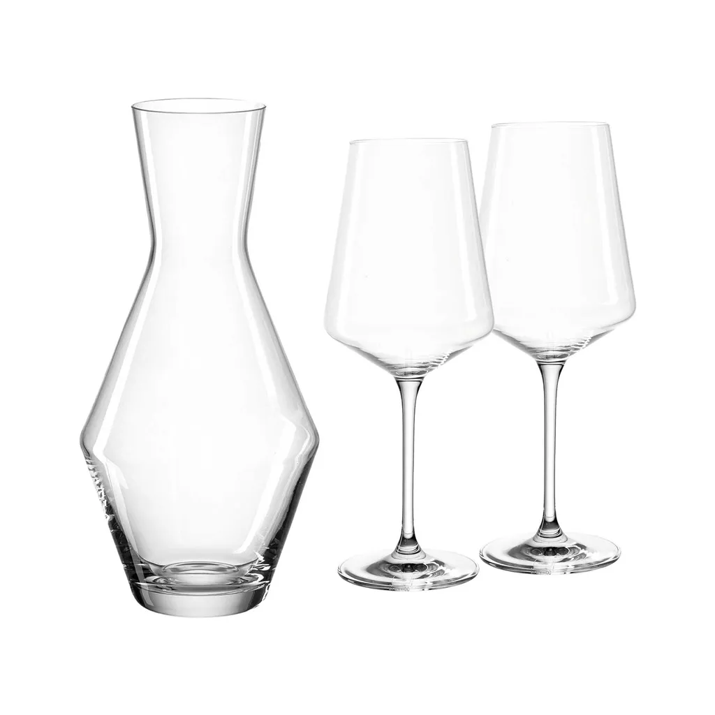 Im Set erhältst Du eine Karaffe und zwei dazu passende Weißweingläser.