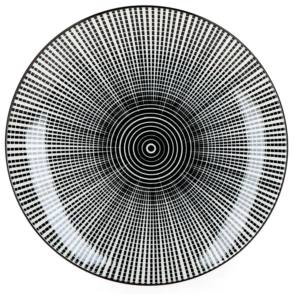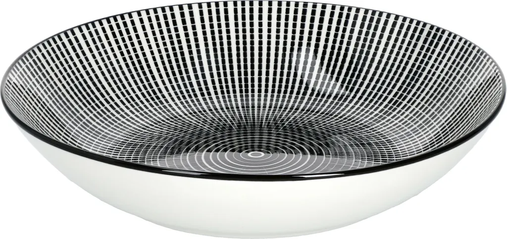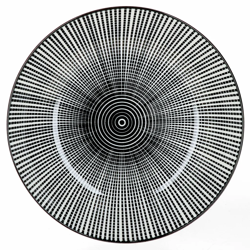 - Das Steingut-Set überzeugt mit seinem schwarzen Linien-Dekor und ist ein echter Hingucker auf Ihrem Tisch