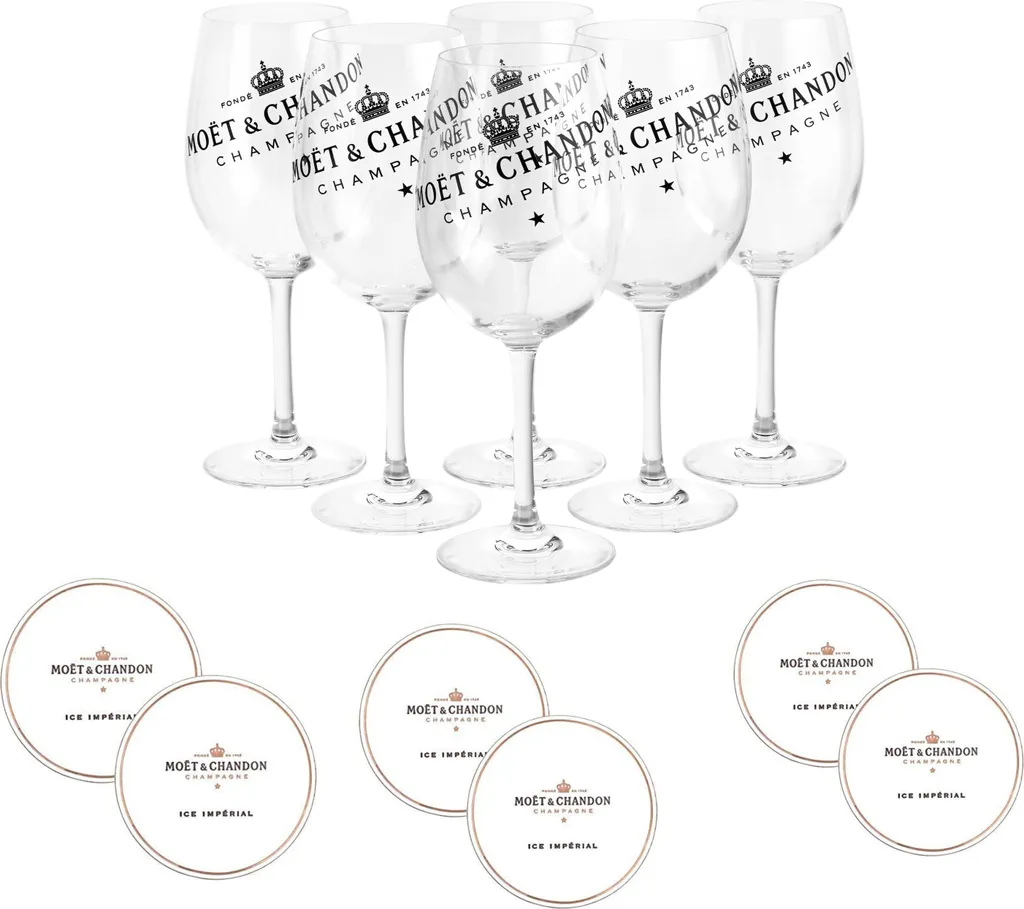 Moët & Chandon Champagner Gläser Klar Aus Echtglas Im 6er Set Inkl. Moët Untersetzer
