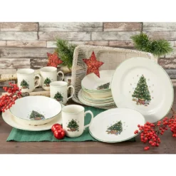 CreaTable 14959 Kombiservice Tannenbaum Für 4 Personen, Steingut, Creme/grün (1 Set, 16-teilig)