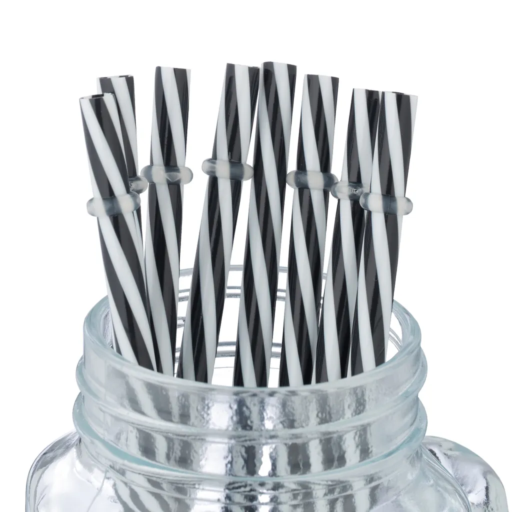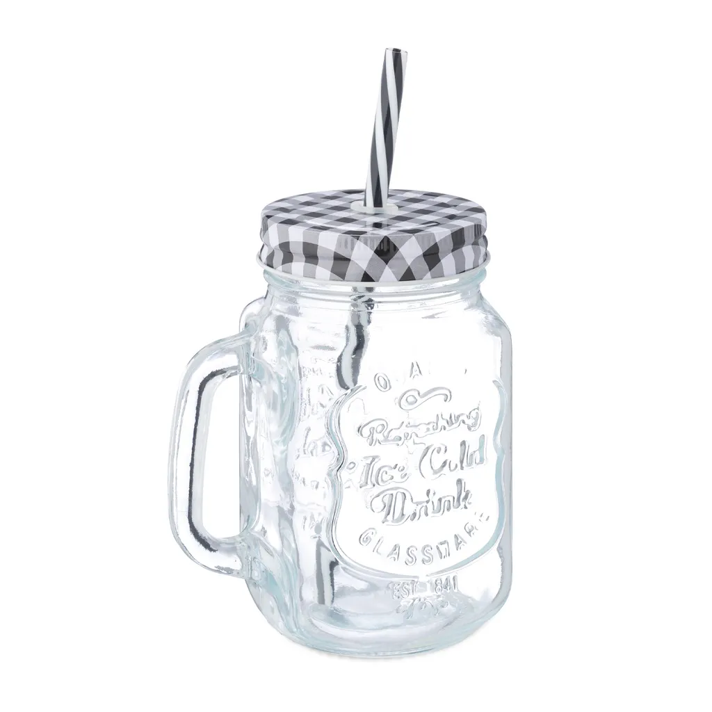 – Praktisches 8er Set mit karierten Deckeln und Trinkhalmen