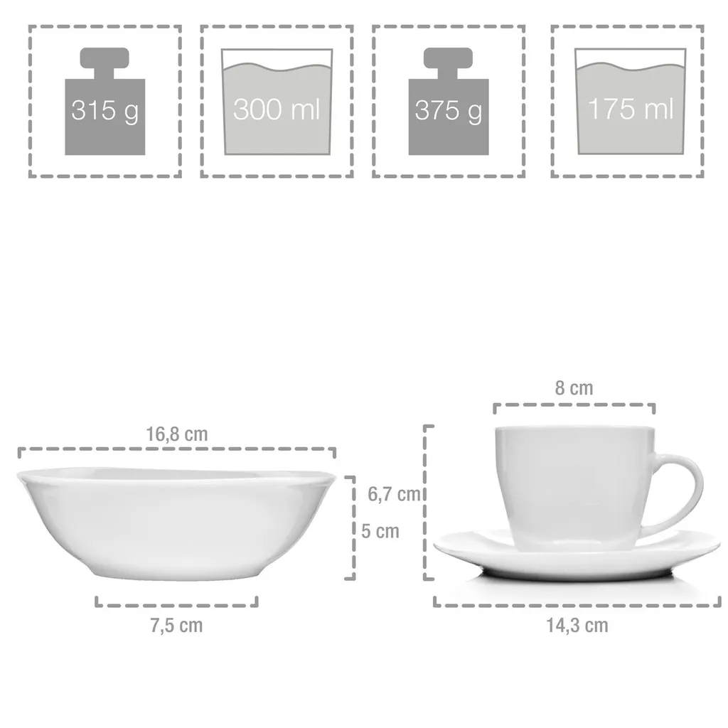 Mit diesen Kombiservice der Firma Sänger lässt sich wirklich jede Speise anrichten wie im fünf Sterne Restaurant. Das hochwertige Porzellan der Teller, Schüsseln und Tassen. Das elegant moderne Design machen dieses Set zum Must-Have für jeden der Essen und die Zubereitung von diesem liebt