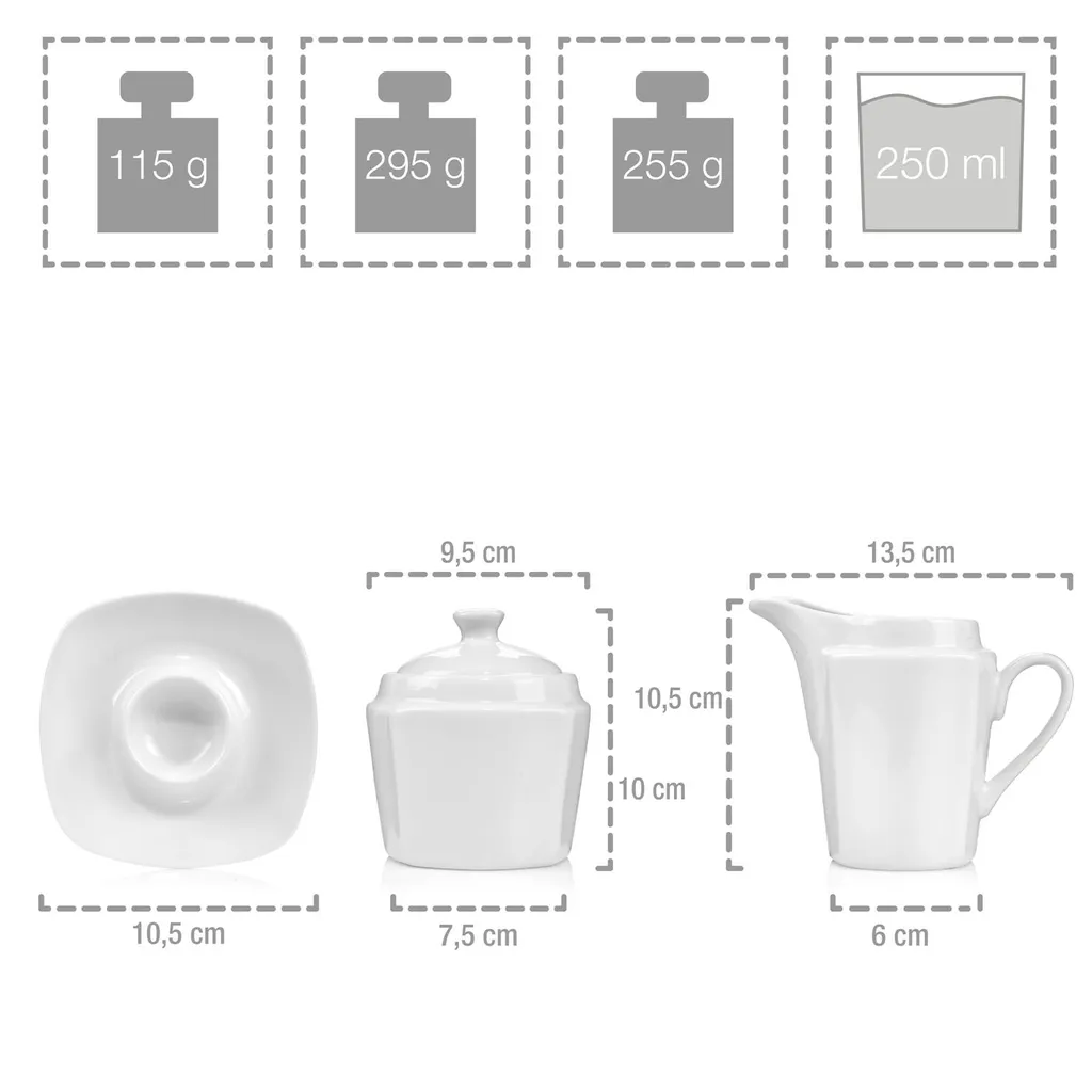 Mit 86 Teilen kommt ganz schön was zusammen! Das Geschirr Set beinhaltet 12 Speise-, Suppen- und Dessertteller, Müslischalen sowie 12 Tassen und Untertassen. 12 Eierbecher finden in diesem Geschirrservice Ihren Platz genau so wie eine Zuckerdose und Milchkännchen