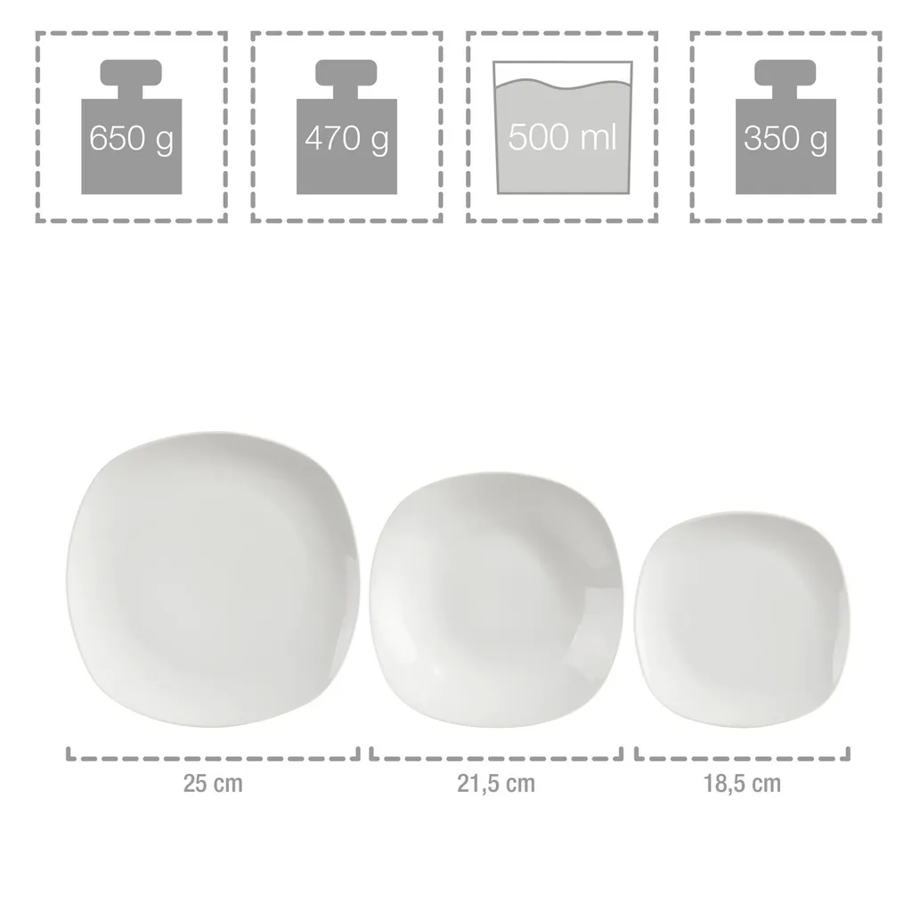 12x Suppenteller | LxBxH: 21,5×21,5×4 cm | Füllmenge 500 ml | Gewicht 470 g