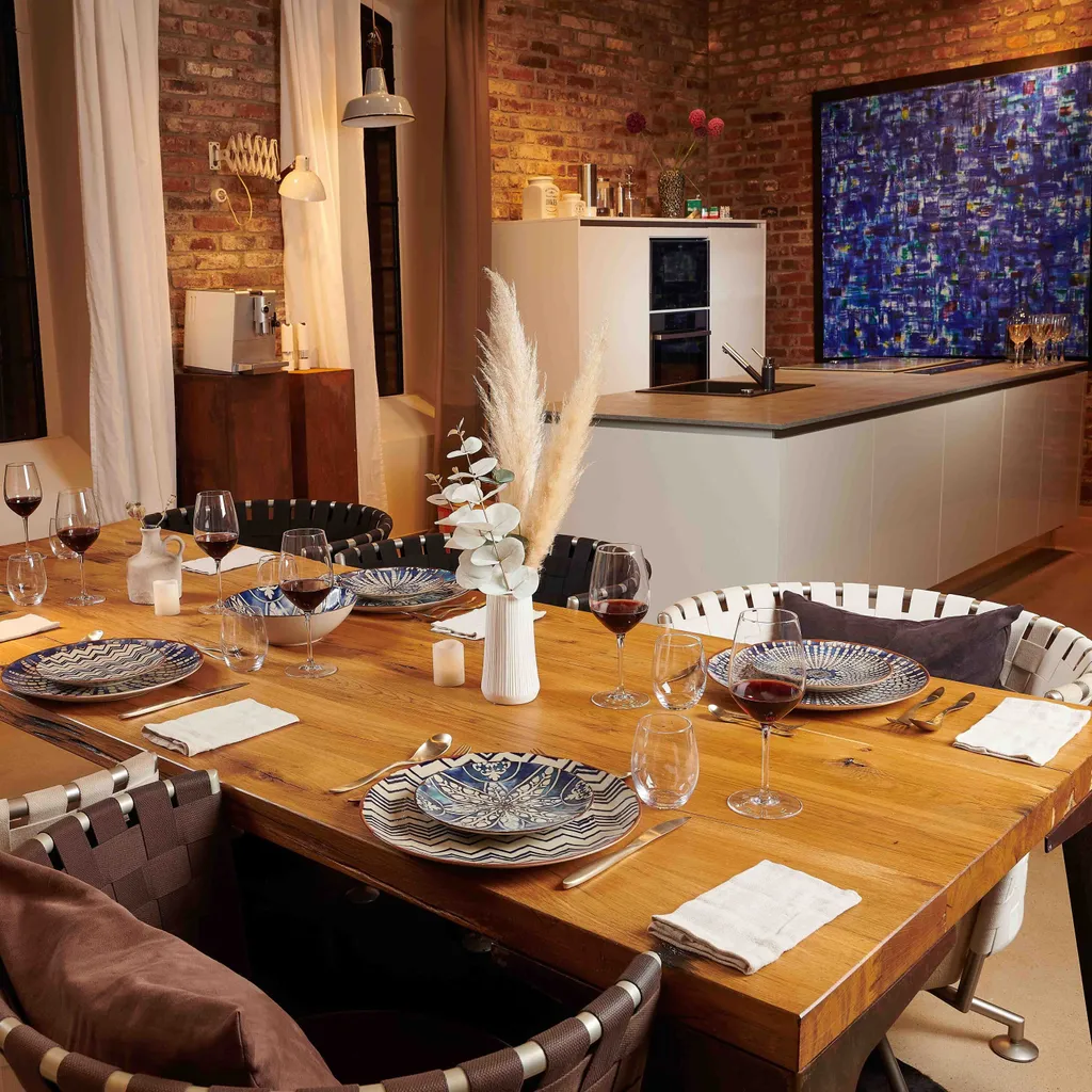 Die Keramikgeschirr Serie „Iberico Blue“ der österreichischen Traditionsmarke Mäser ist ein absolut außergewöhnlicher Blickfang auf jeder gedeckten Tafel. Überraschen Sie Ihre Gäste mit einer Zusammenstellung aus 4 unterschiedlichen Designs im maurischen Stil, die sich zu einem harmonischen Ensemble mit mediterranem Flair arrangieren. Gefertigt in Portugal aus hochwertigem Steinzeug, werden Sie an dieser mediterran anmutenden Kollektion lange Freude haben. Trotz des aufwändigen Nachbildungs ist die gesamte Tafelgeschirr Serie „Iberico Blue“ mikrowellengeeignet, backofensicher und dauerhaft spülmaschinenfest.