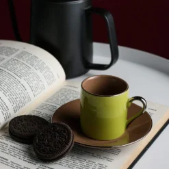 18tlg Kaffeeservice Malaga Kaffee Tee-Gedeck 6Pers Kaffeetassen Dessertteller Abstrakt Handbemalt