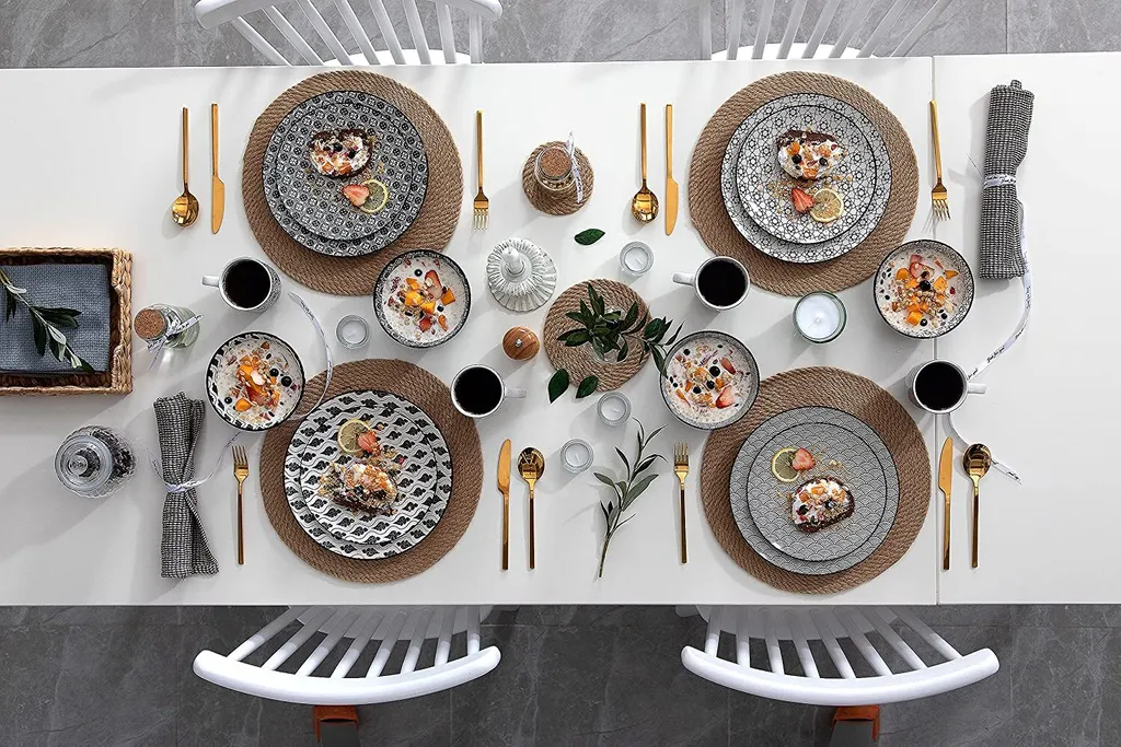 - Ausgezeichnetes Design und professioneller Hersteller. Traditionelle runde Form, mit eleganten, wunderschönen Dekoration in einer modernen Zusammenstellung, vintage klassische Pastelltöne-Schwarz und weiß ergeben ein wunderschönes Gedeck und entstehen eine wunderbare angenehme Harmonie. Ideal für jede festlichen Anlässe oder täglichen Gebrauch. Eine außergewöhnliche, gute Option für Sie!