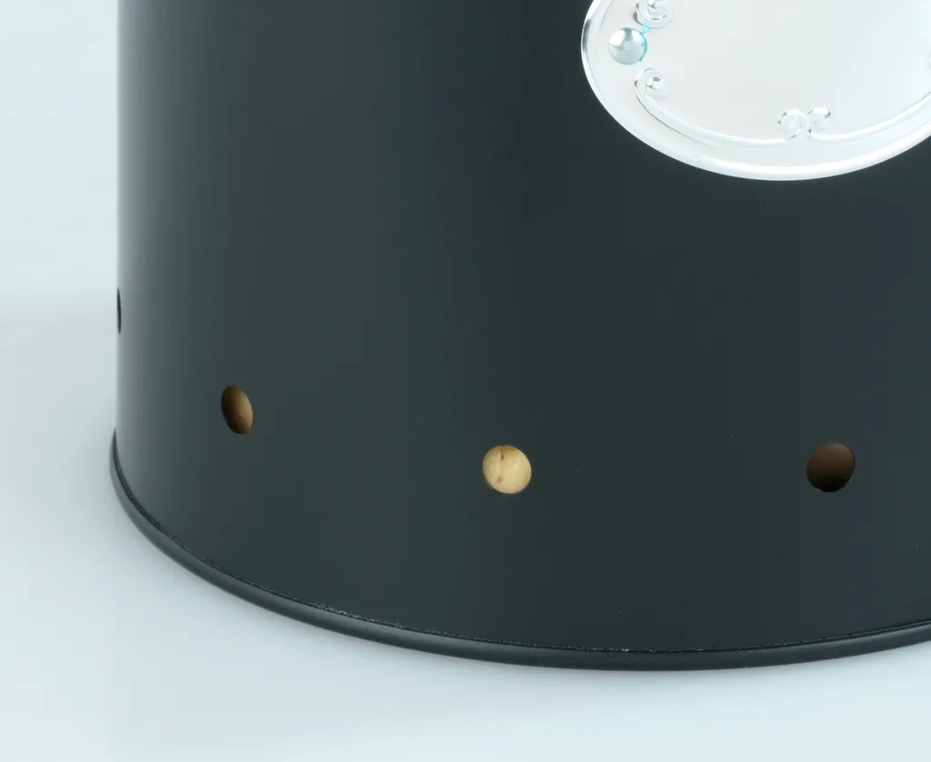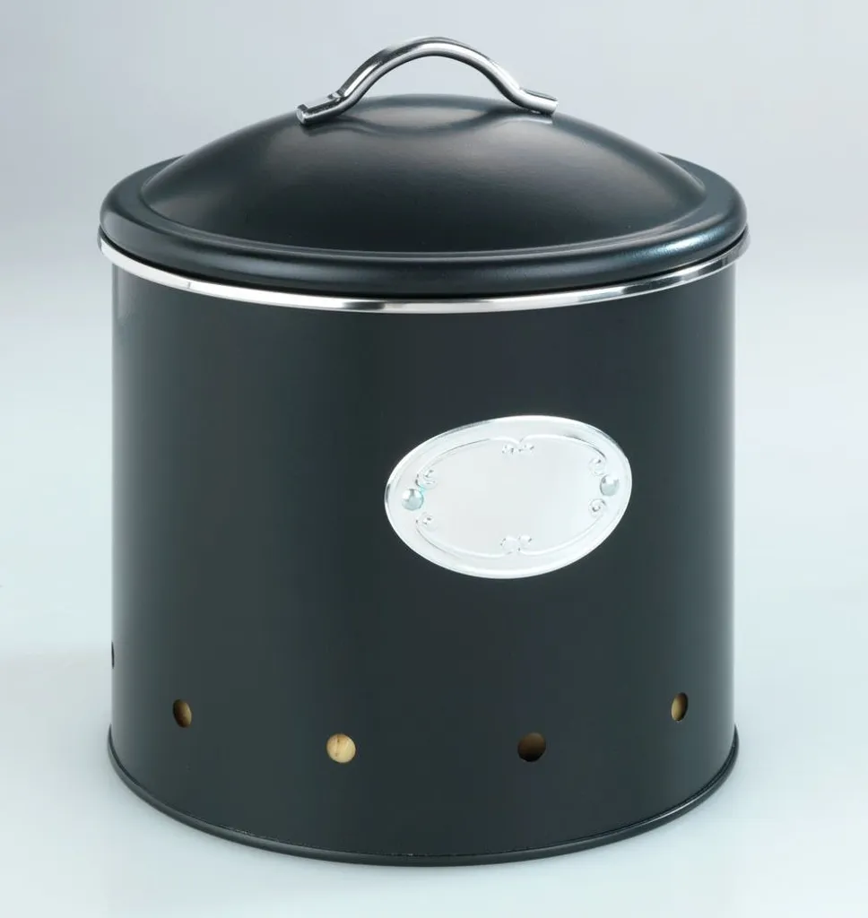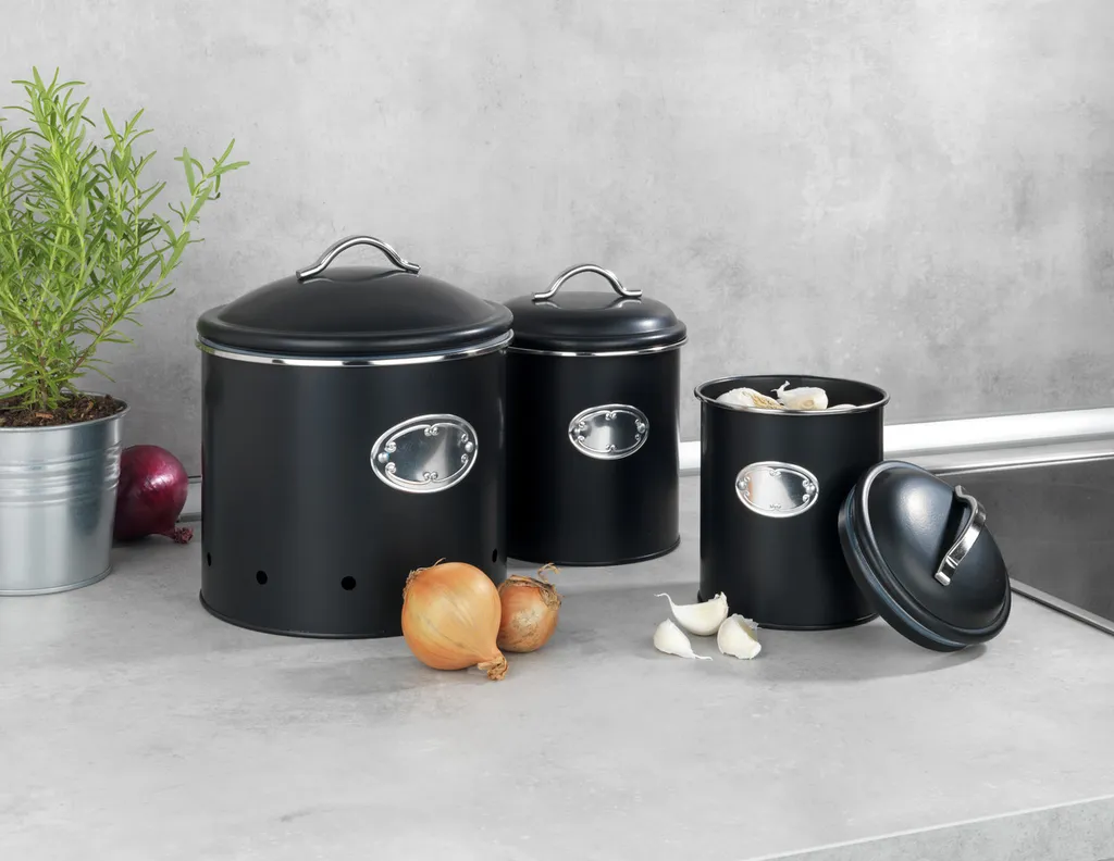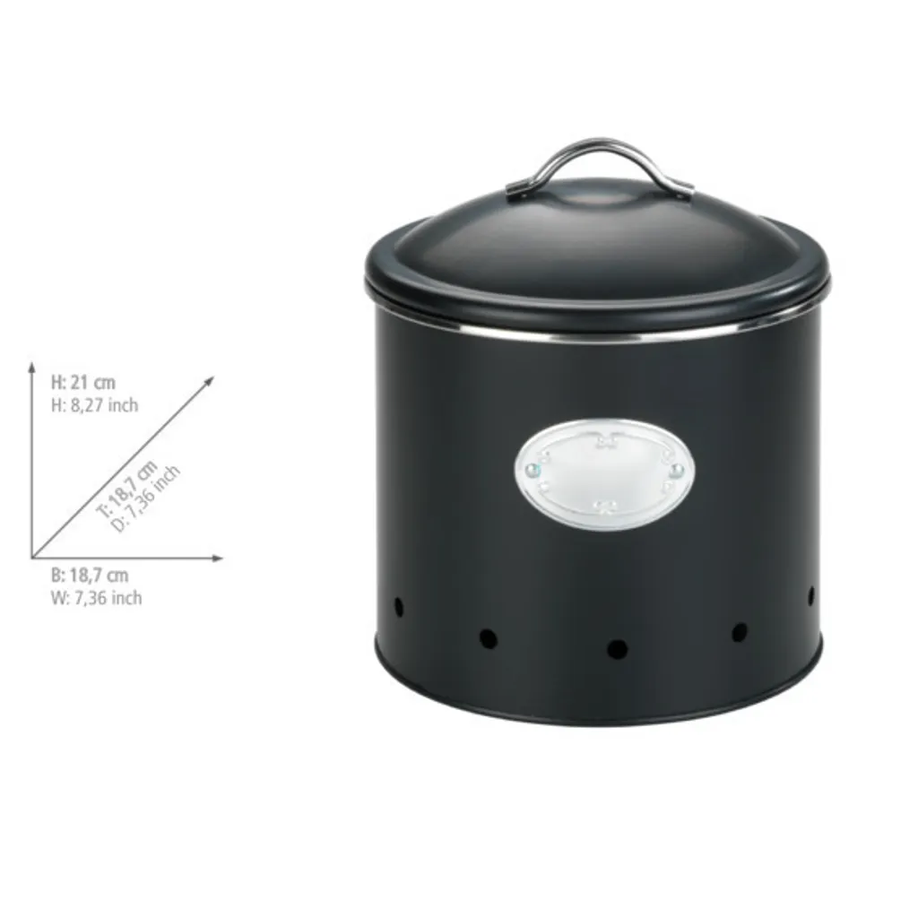 Die Aufbewahrungsdose Nero mit Löchern hat ein Fassungsvermögen von 4 Litern und eignet sich zur Aufbewahrung von trockenen Lebensmitteln, besonders aber für Kartoffeln, Zwiebeln und Knoblauch. Da die Löcher für einen optimalen Luftaustausch sorgen, sind die Lebensmittel vor Schimmel geschützt und bleiben länger frisch.