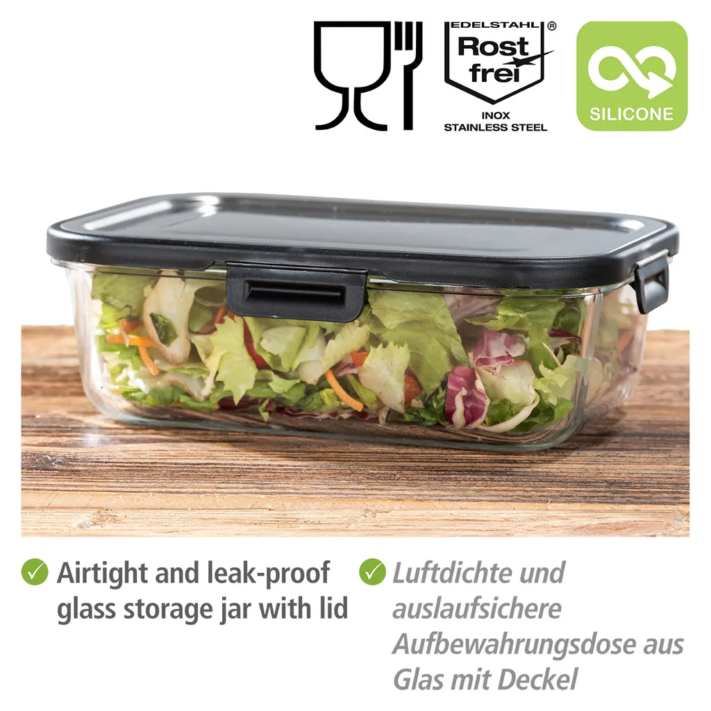 Die Glasaufbewahrungsdosen Steel von WENKO überzeugen dank hochwertiger Materialien und Ihrer Funktionalität. Der Deckel ist aus rostfreiem Edelstahl gefertigt und ebenso wie die Dose aus extrem festen Glas spülmaschinengeeignet. Die Glasform ist zudem temperaturbeständig von -20 °C bis + 250 °C, was sie auch als Auflaufform verwendbar macht. Ohne Deckel eignet sich die formschöne Glasdose daher für den Backofen und die Mikrowelle.